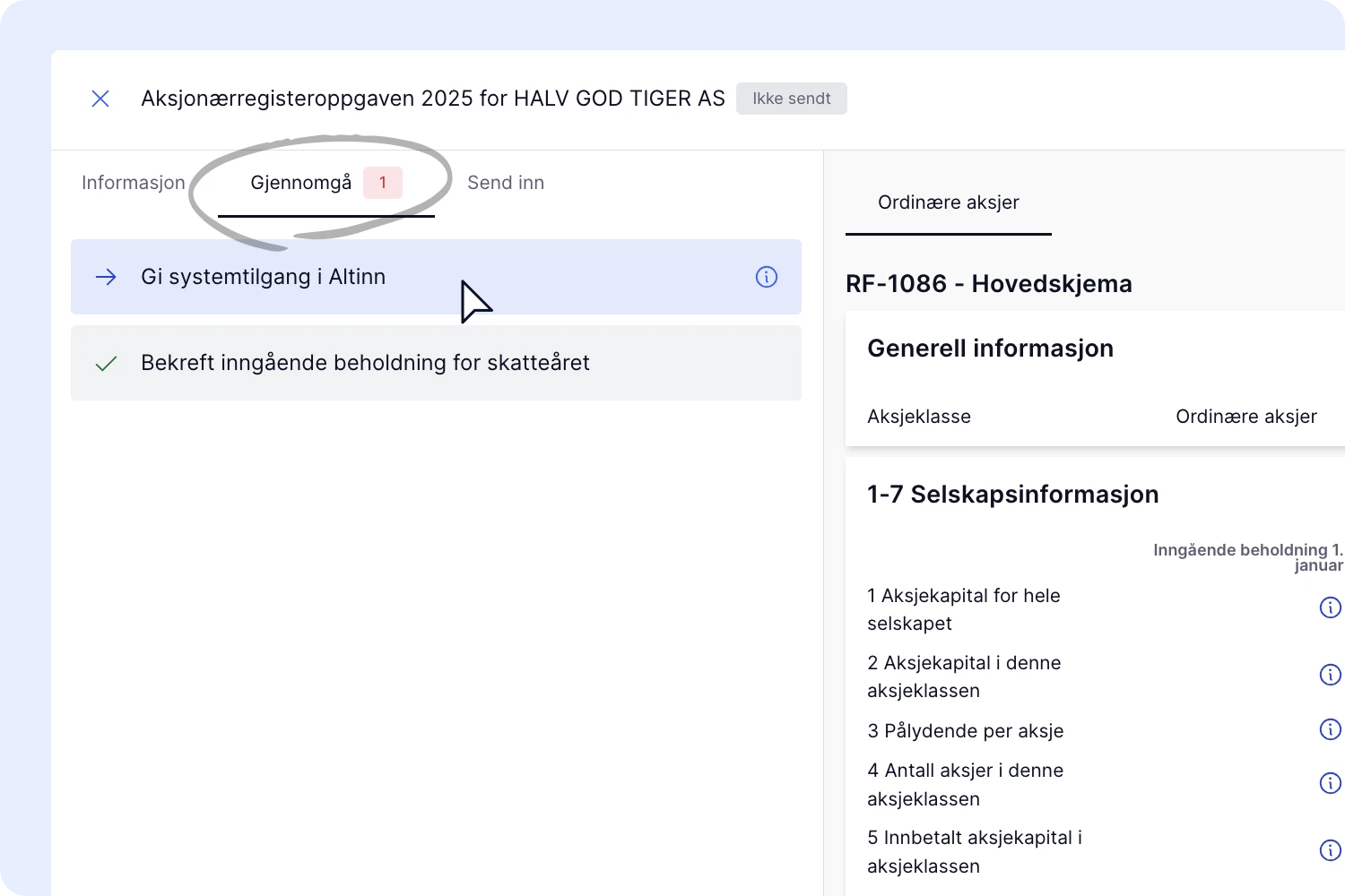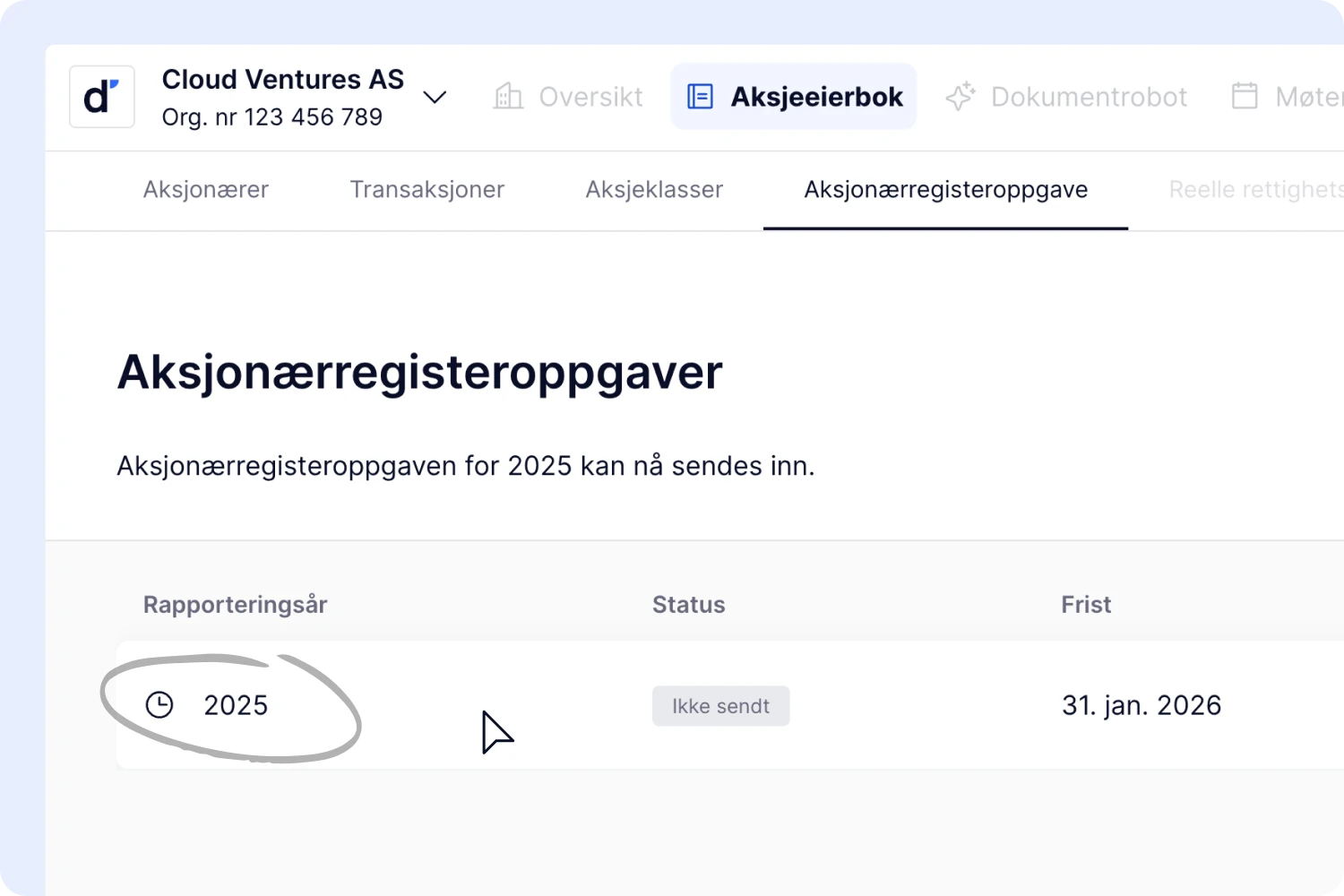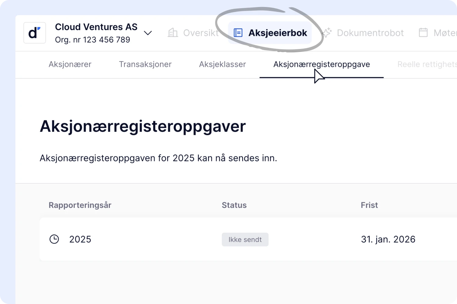 2. Velg deretter fanen Aksjonærregisteroppgave