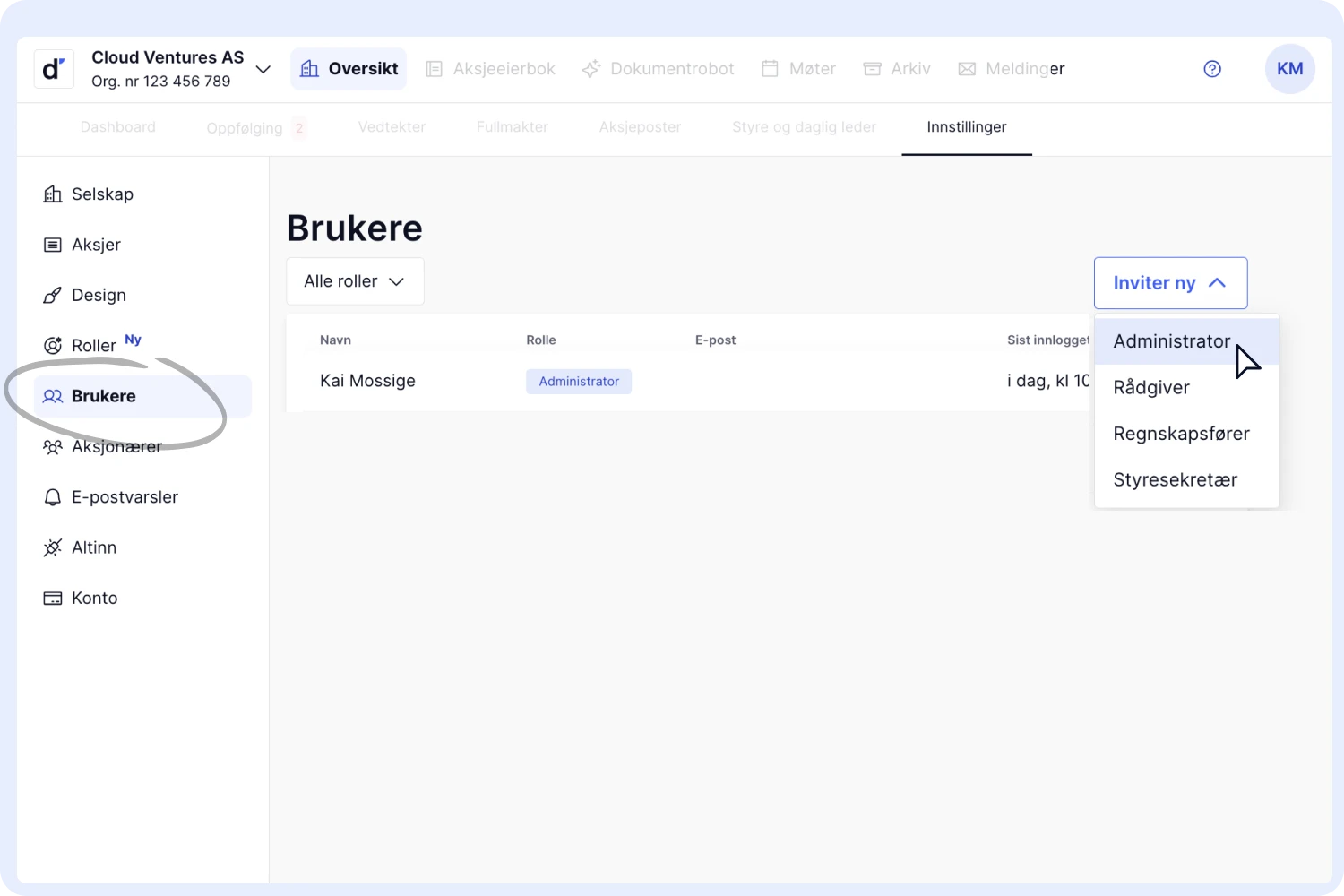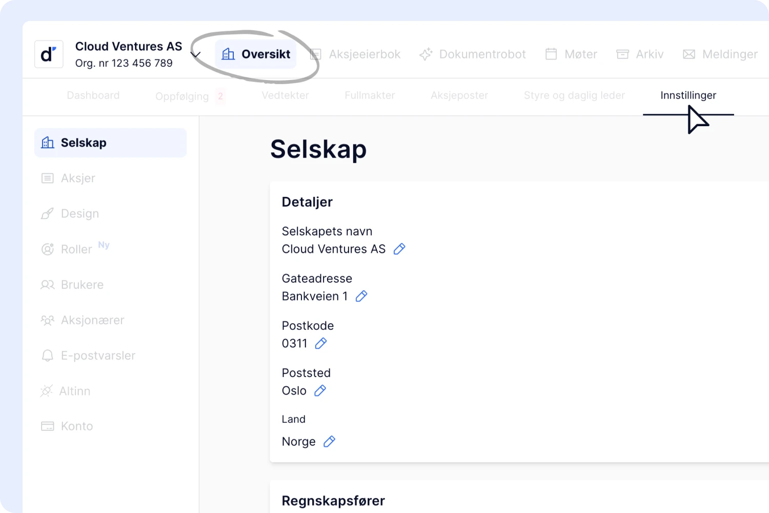 Følg denne veiledningen for å gi din regnskapsfører tilgang til å levere aksjonærregisteroppgaven via dCompany på vegne av selskapet ditt.