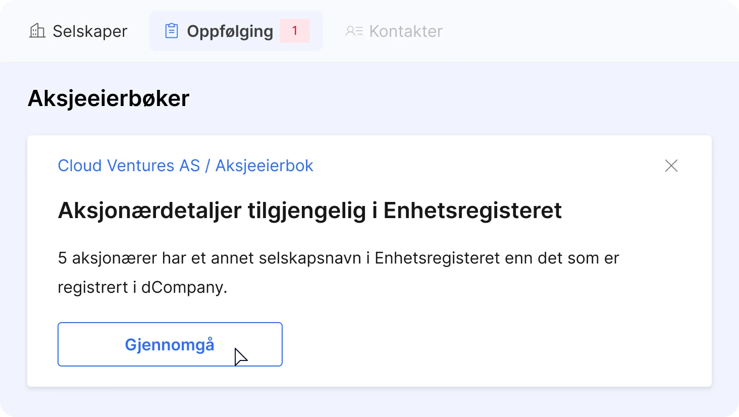 Vi jobber kontinuerlig for å gi deg enda bedre kontroll og oversikt over selskapsdataene dine – slik at du alltid kan stole på at informasjonen er korrekt og oppdatert.